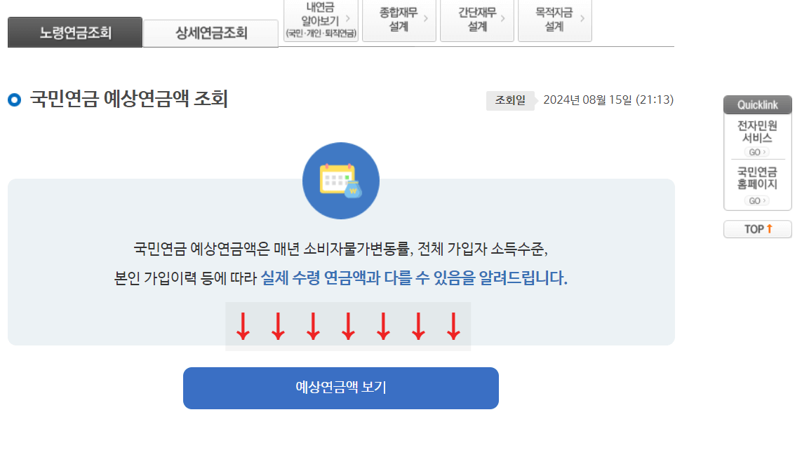 중앙의 "예상연금액 보기 버튼"을 이용해주세요.